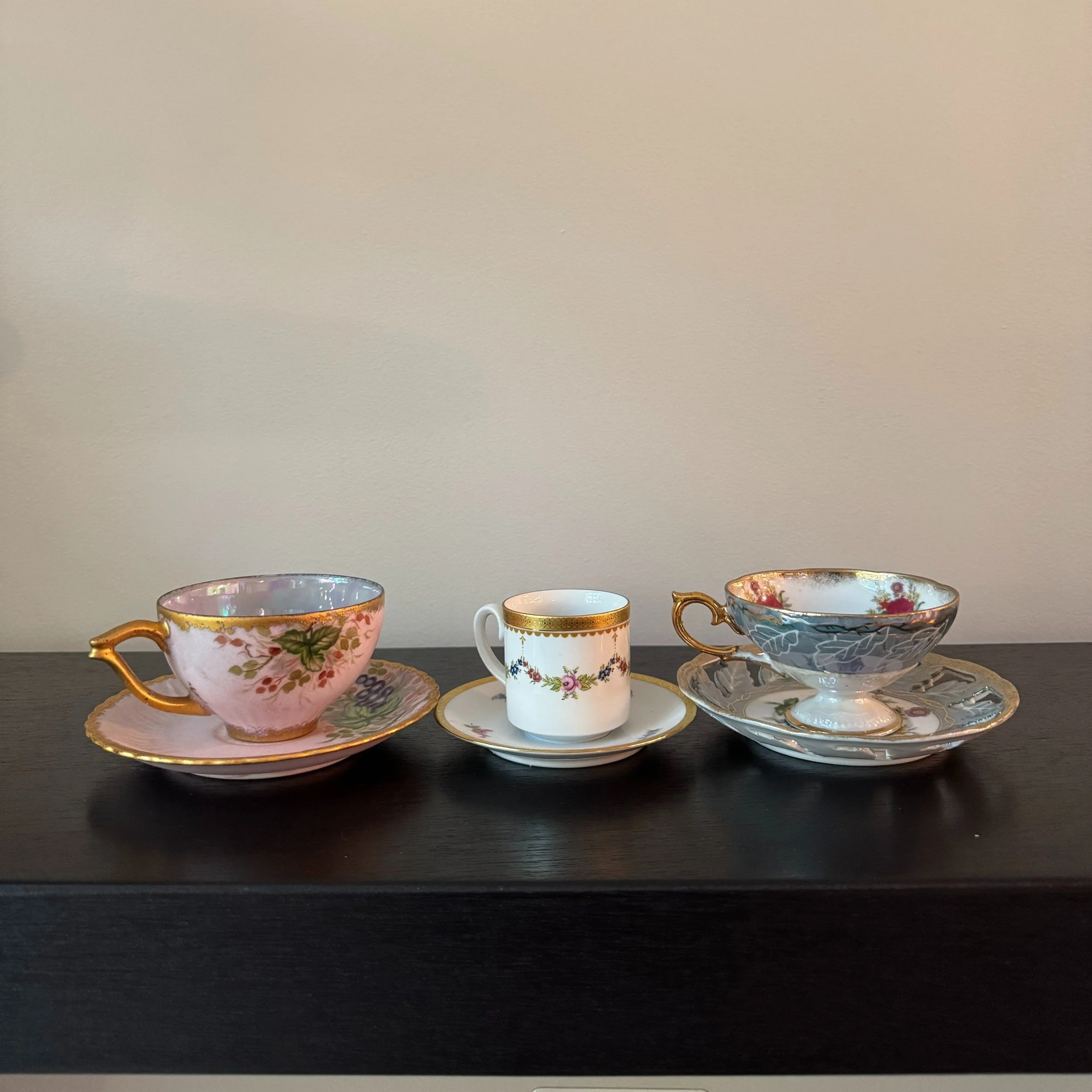 Blue & White Teapot $20.00 Ceramic Trivet $15.00 Japanese Ceramic Cups $40.00 Candelabra $60.00 Tea Cup Collection $55.00 Flamingo Neon Light $20.00 Smith Corona SL 80 Typewriter $30.00 Ceramic Vase $35.00 Antique Lamp $35.00